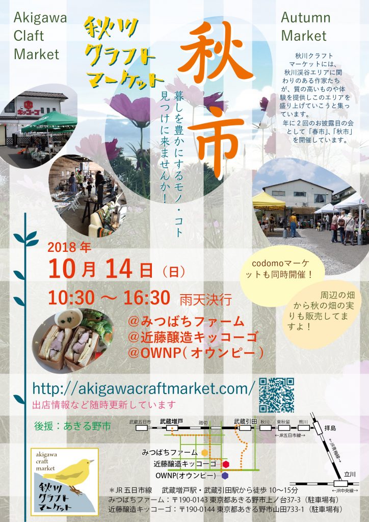 秋川クラフトマーケット 秋市2018に、今年も参加致します。